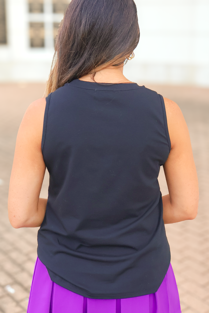 Wear our Meet Me In Death Valley Sequin Tank Top by Bomb Designs with light denim jeans and sneakers for a cute gameday party look, or style this sequin tank top with one of our ruffled skorts and an adorable pair of knee high boots for a fun look perfect for cheering LSU! You do not want to miss out on this gorgeous sequin tank top! Allow this transitional top to take your wardrobe from summer to fall!