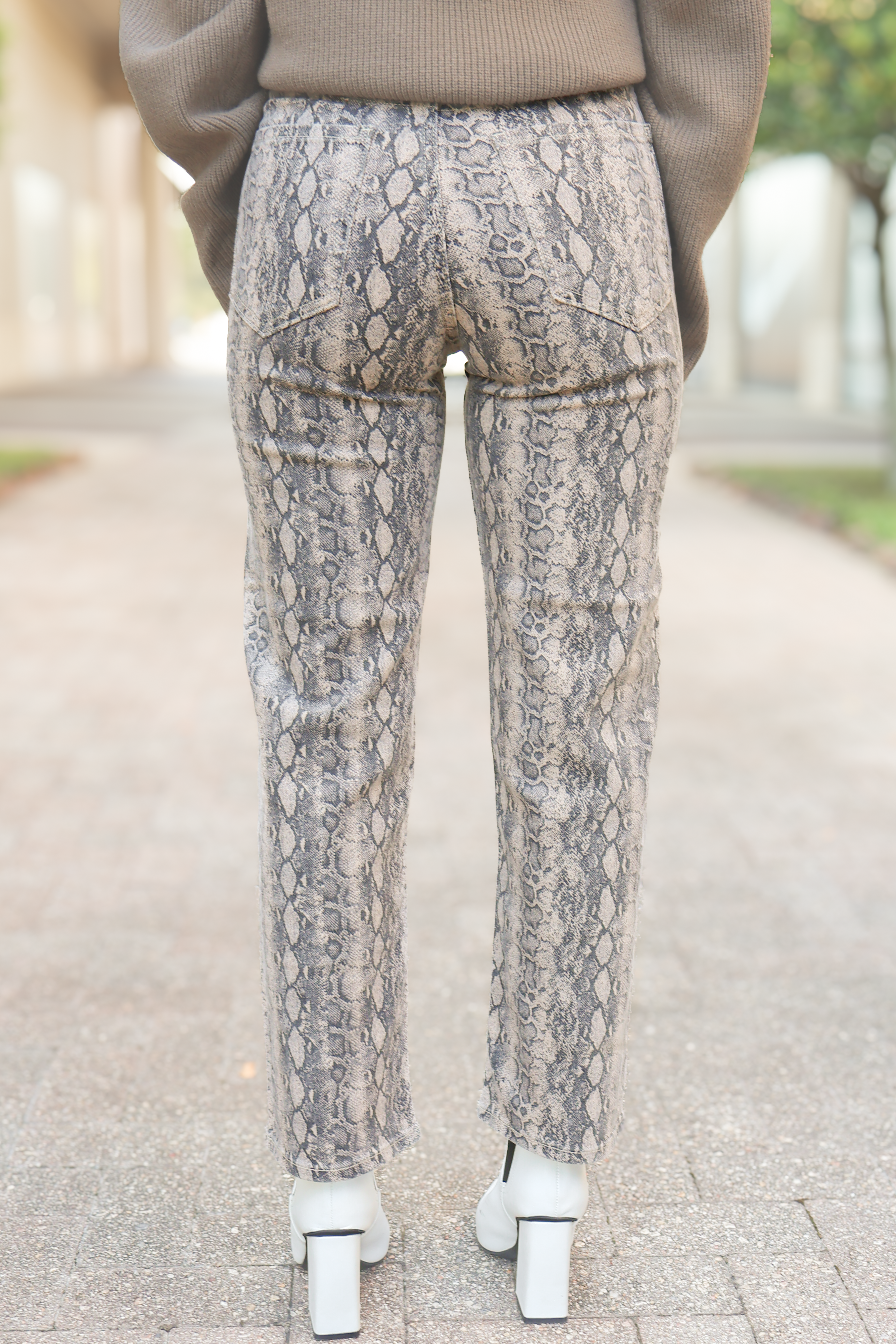 Wear our Here You Go Snake Print Straight Leg Jeans with a basic bodysuit and fashionable sneakers for a casual look or style these snake print pants with a cute top and heels for a dressy outfit perfect for date night! Elevate your wardrobe by adding these stylish snake print pants to your cart now! You do not want to miss out on these straight leg pants!
