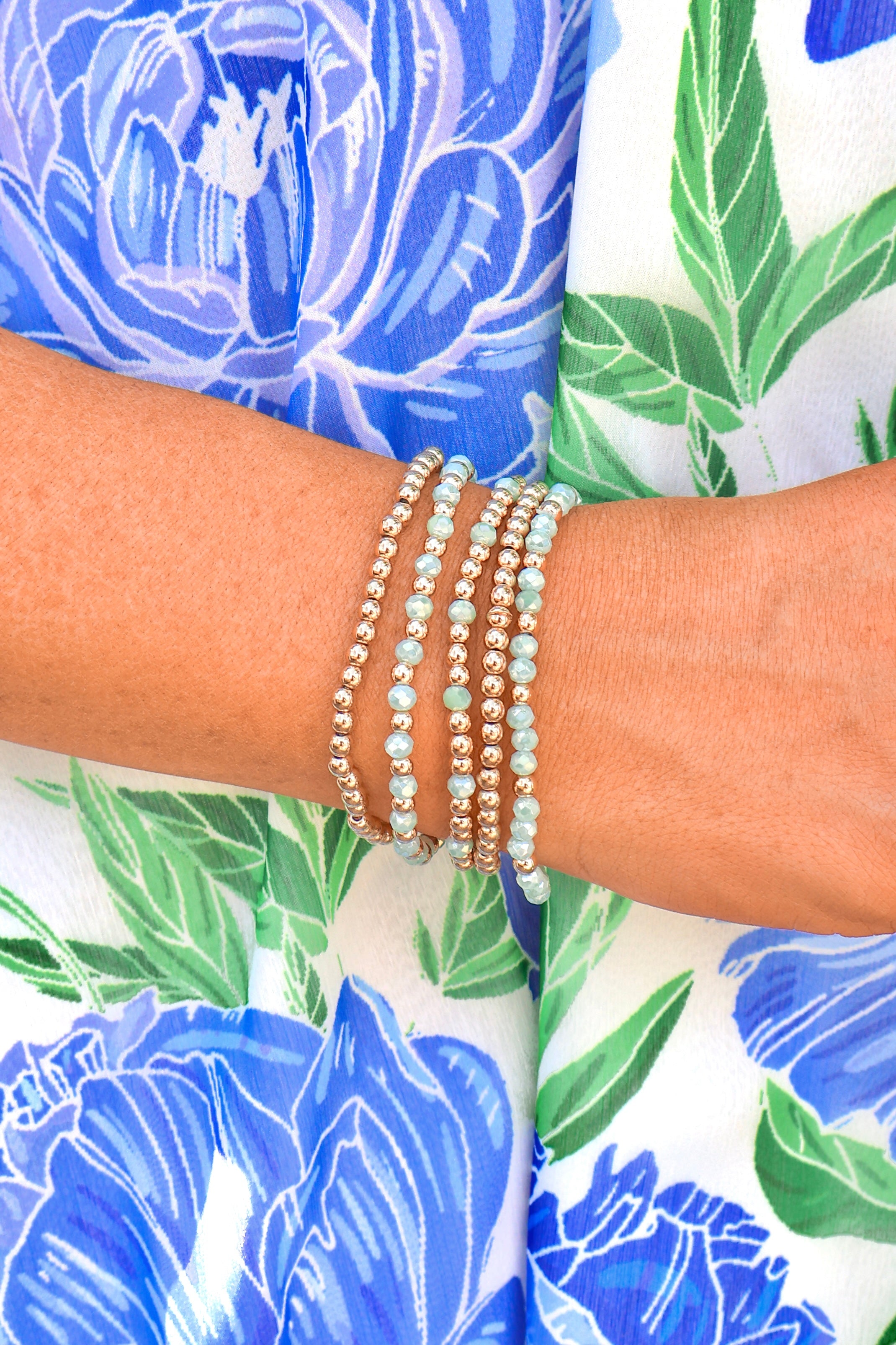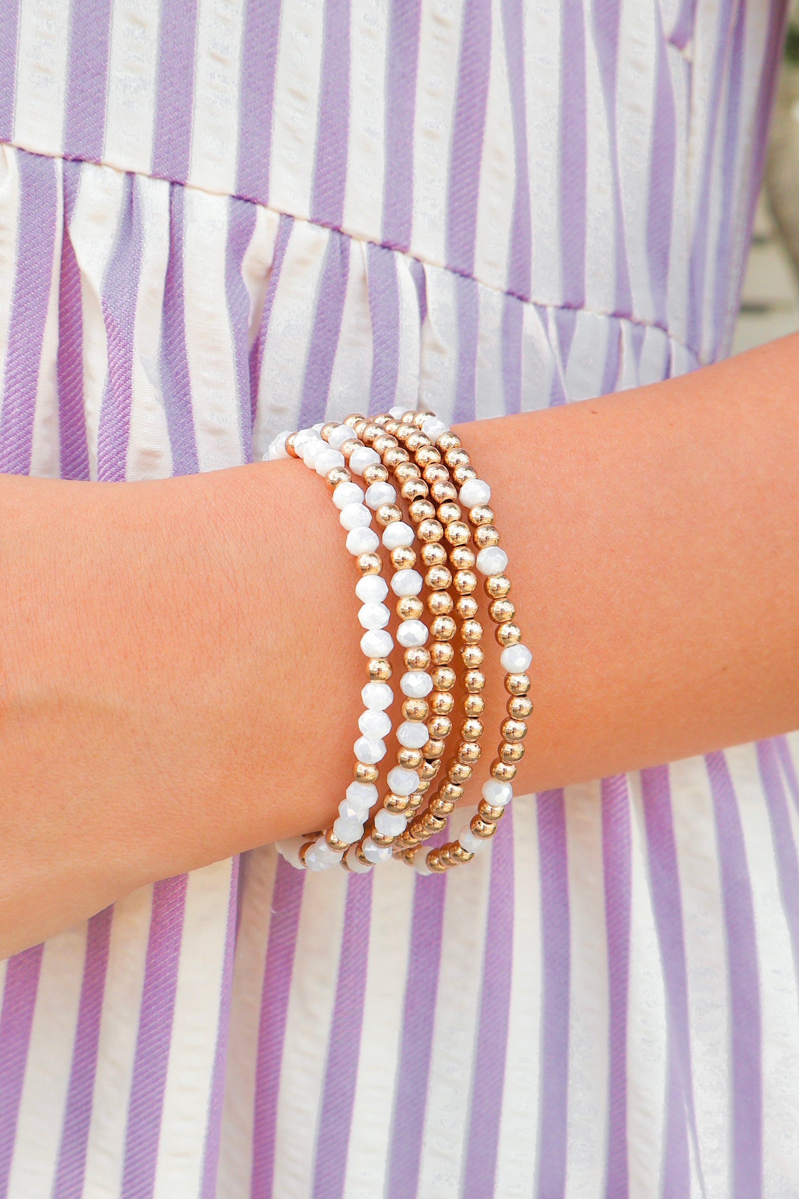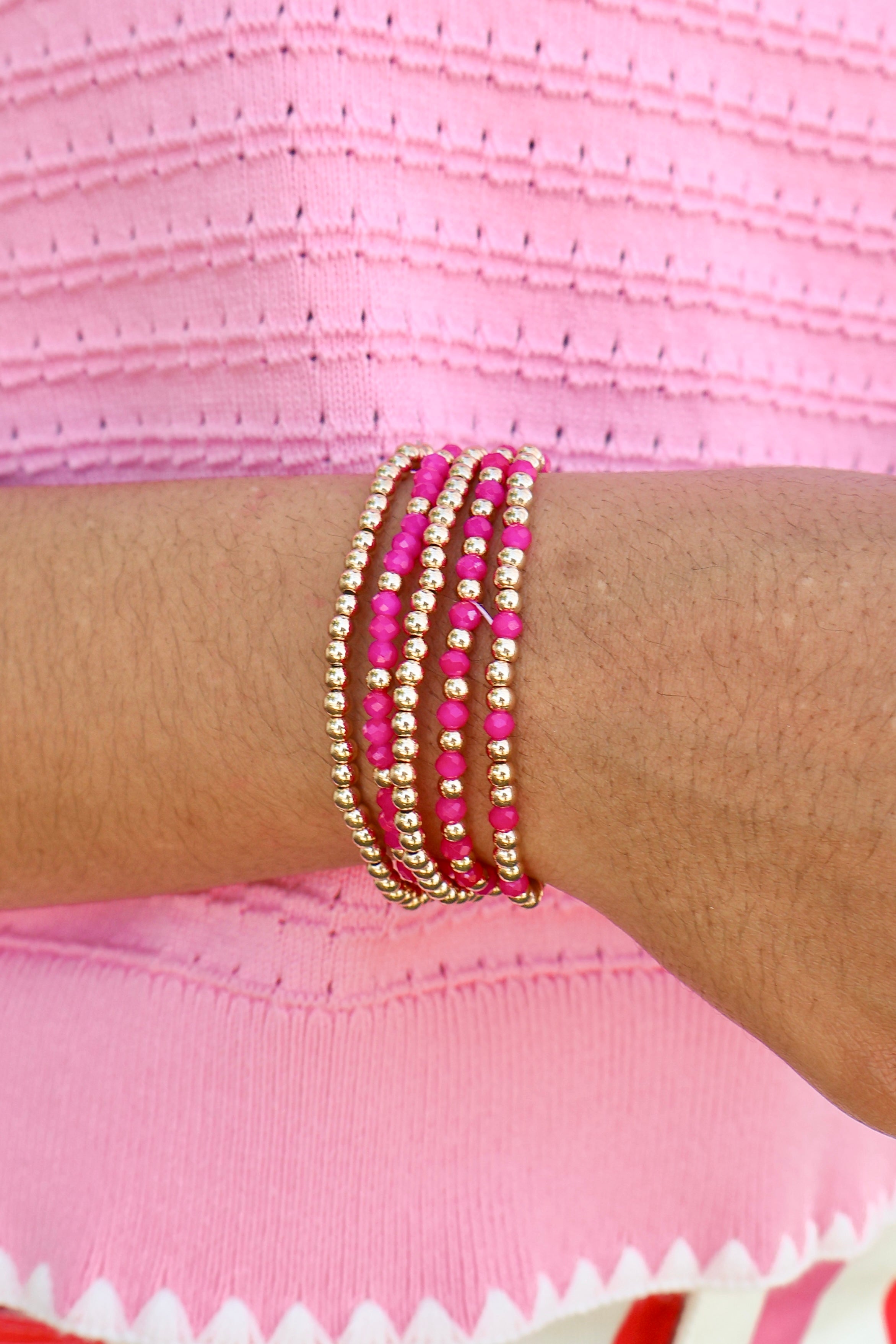 Pair our In the Details Beaded Bracelet Set with a denim dress and sneakers for a day out or style this bracelet with a floral skirt and a fun spring blouse for a date night outfit. You do not want to miss out on this stunning bracelet set!