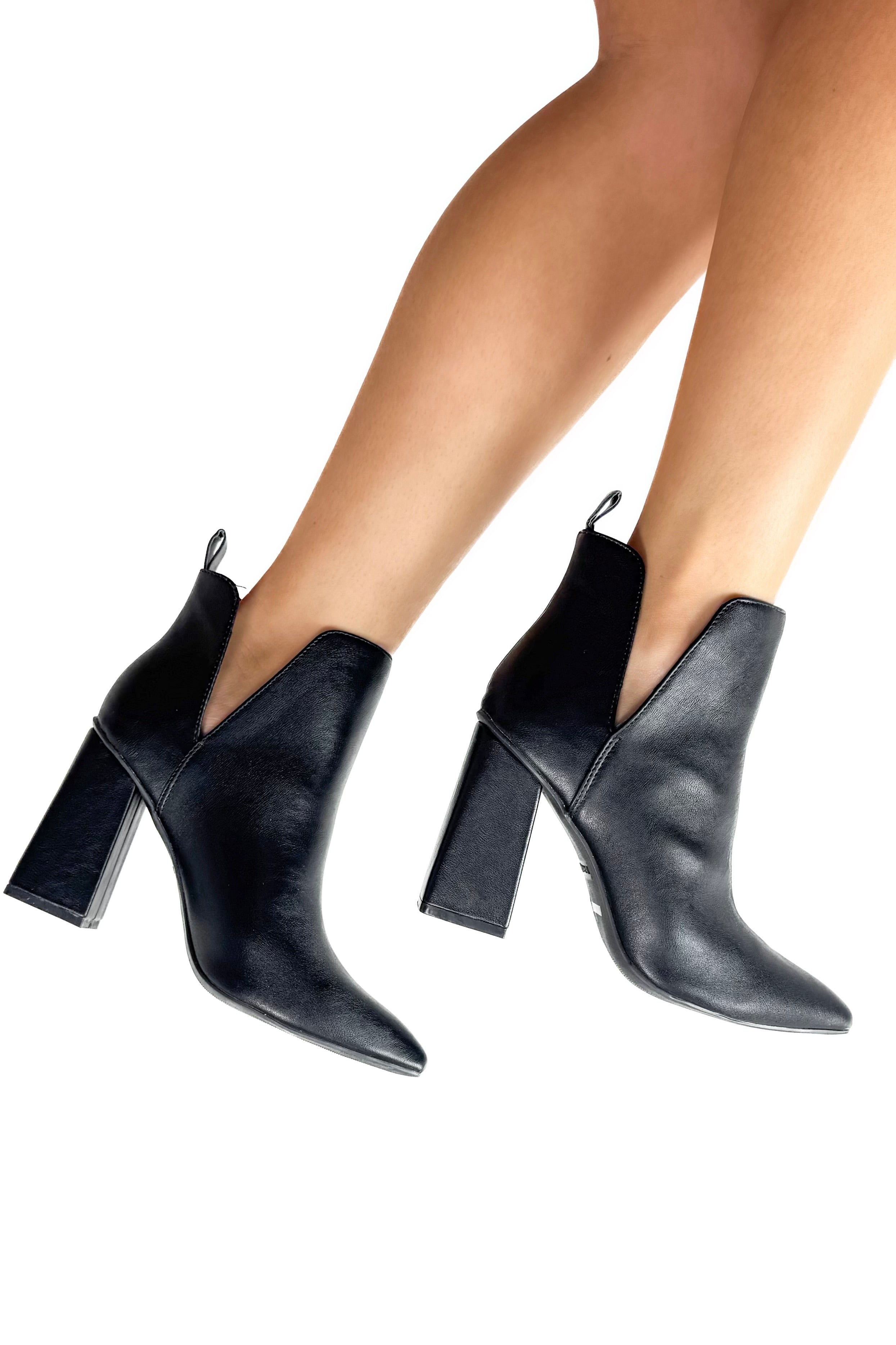 Just Because Side Slit Chunky Heel Booties