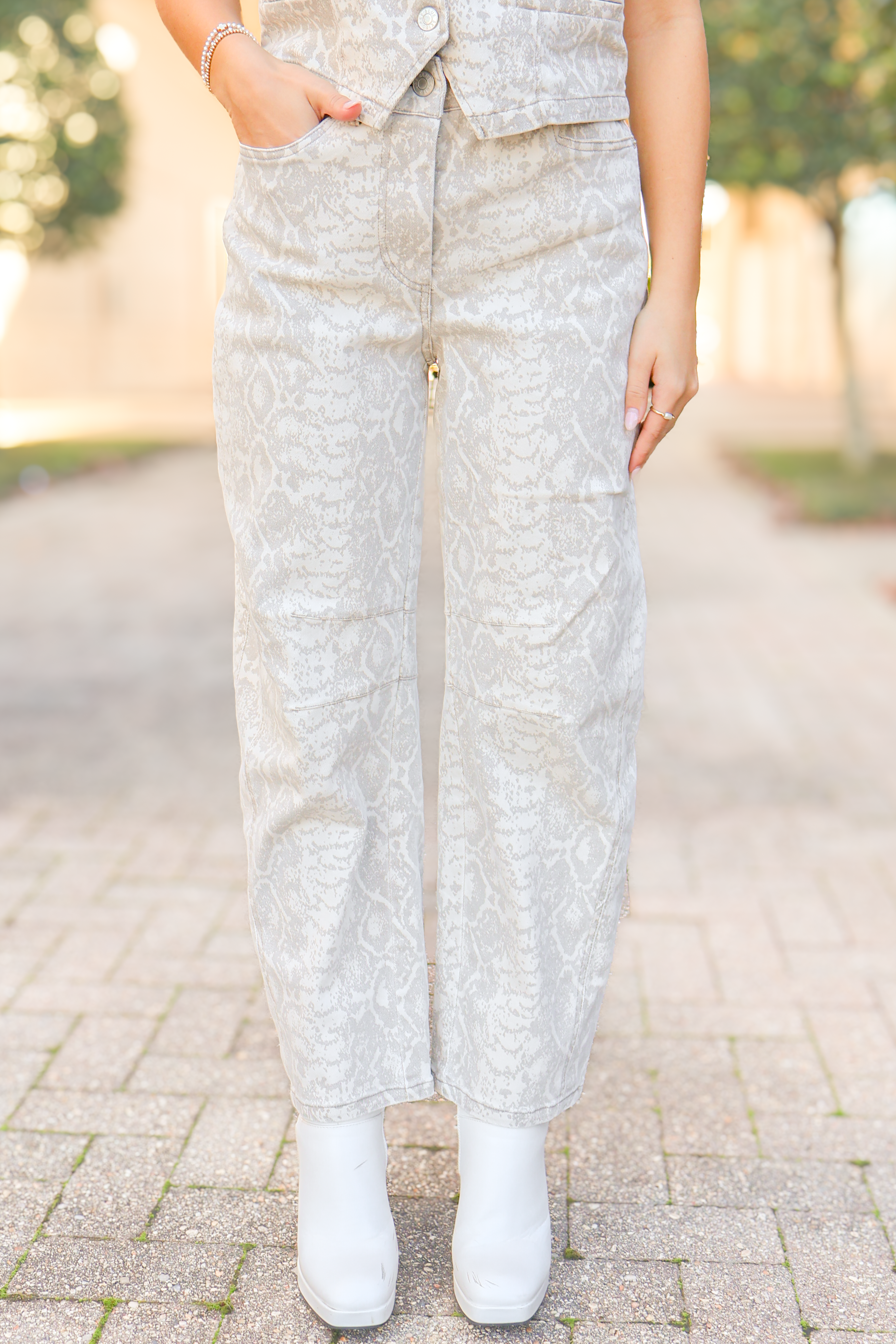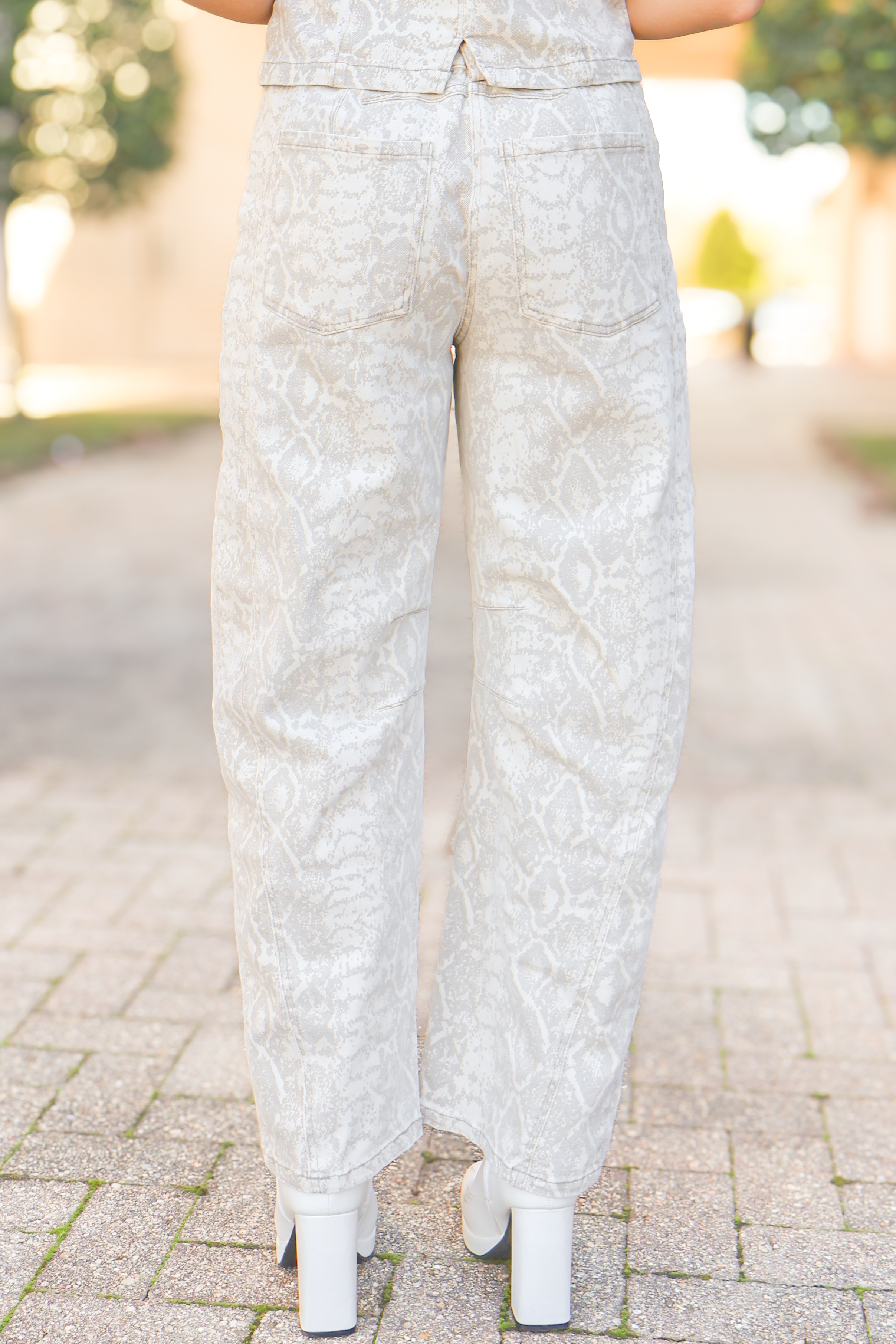 Our Just Like We Planned Snake Print Barrel Jeans are the perfect piece no matter the season! These barrel leg jeans are the perfect way to incorporate trendy into your style. The snake print pattern of these jeans allow them to be worn for every day activities as well as for more festive occasions! The high waist style of these jeans is so flattering for every body type.