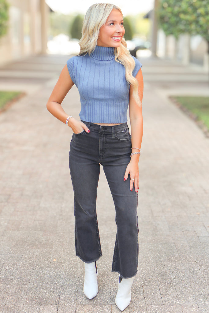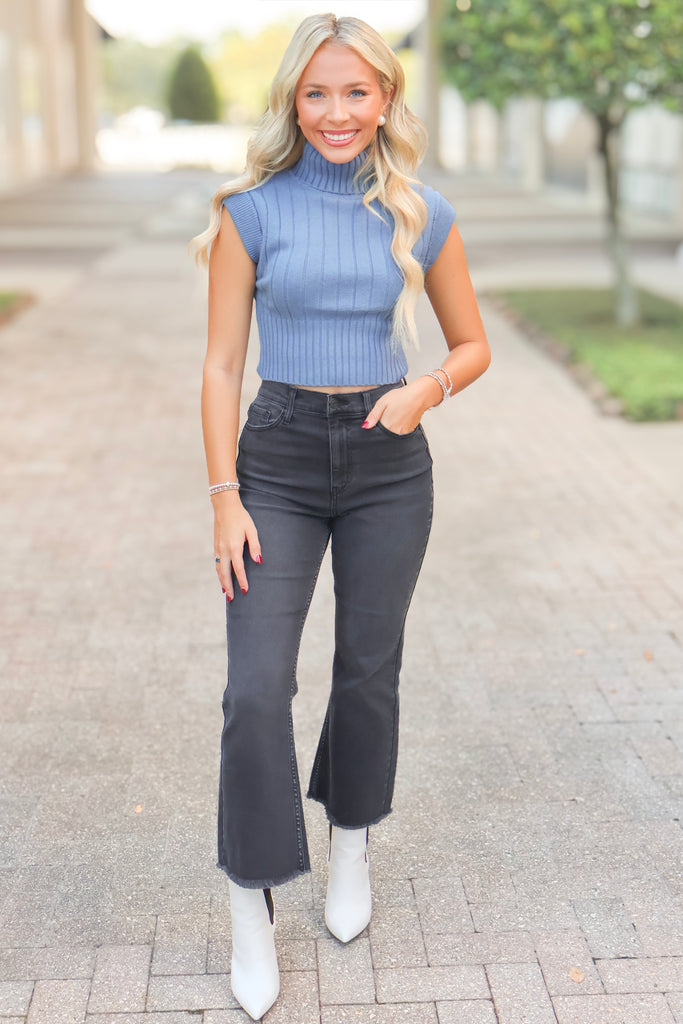 Our Best Of The Best Sleeveless Turtleneck Sweater is the perfect new addition to your wardrobe! This fabulous sweater can be paired with practically any outfit or event! The textured cable knit style adds a girly flair to the simple sweater. Stay comfortable and cool during game days or shopping days thanks to the soft, breathable material and slightly stretchy fabric of this top.