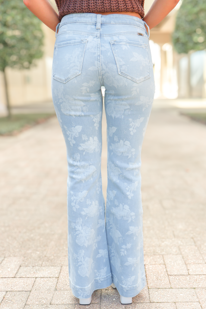 Our Better Than Her Floral Stencil Jeans are the perfect piece no matter the season! These floral stencil jeans have the ideal straight fit style while still allowing them to be comfortable and not restricting. The light denim color of these jeans and the floral stencil details adds a unique and girly touch to these simple jeans. The high waist style of these raw hem jeans is so flattering for every body type.
