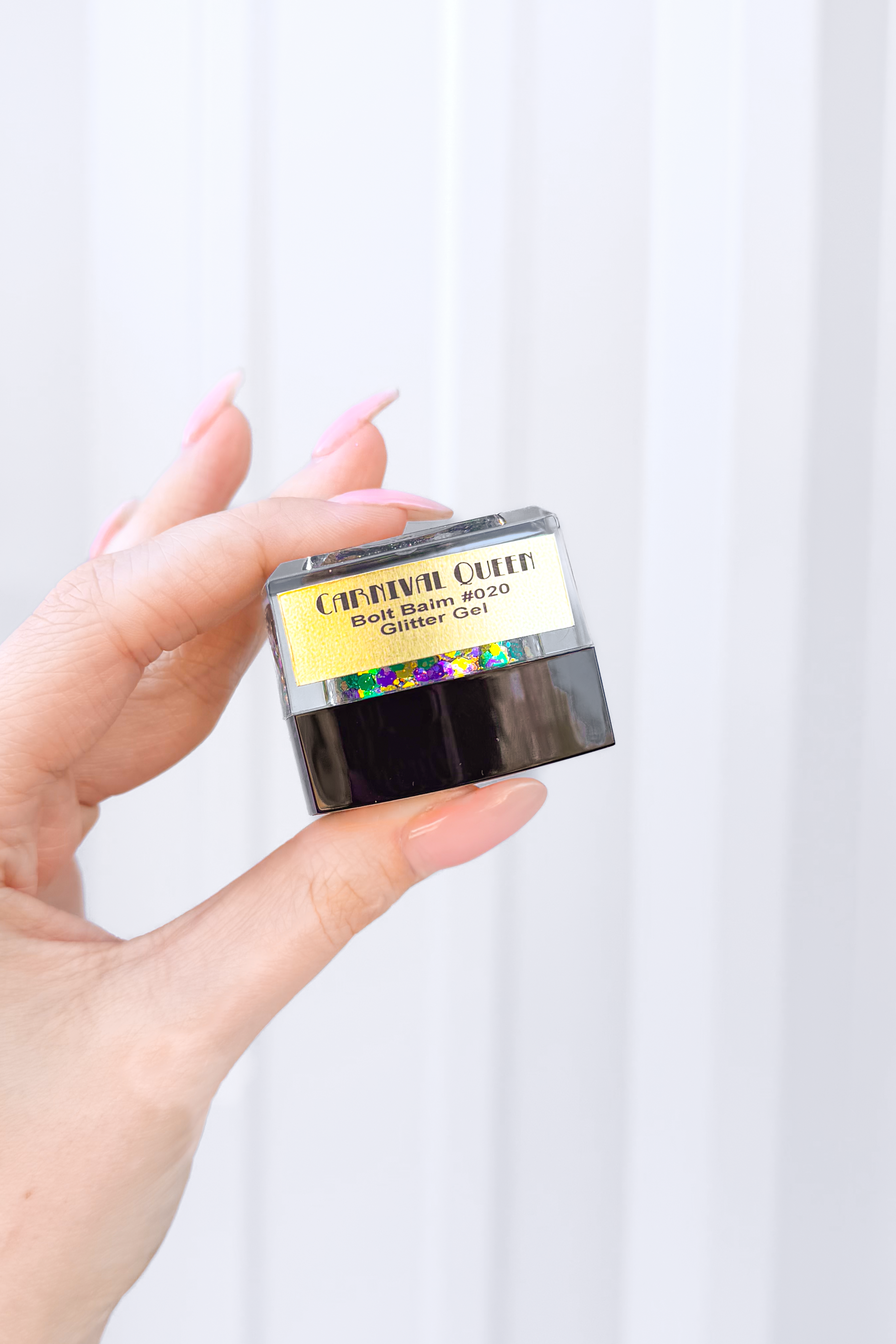 Stand out with this Mardi Gras season with this Carnival Queen Glitter Balm by Elektra Cosmetics! This fun glitter is perfect to put on before a parade or party! No need to add glue to this glitter, it already has glue mixed in!
