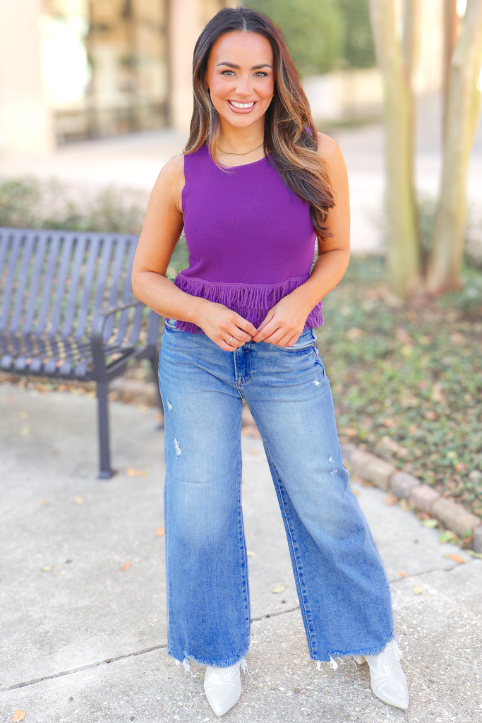Wear our Catch You Later Fringe Hem Tank with the matching pants and sneakers for a cute gameday day look! Or style this tank top with the denim shorts and knee high boots for a night out with the girls! You do not want to miss out on this gorgeous tank top! Allow this transitional fringe hem top to take your wardrobe from summer to fall!