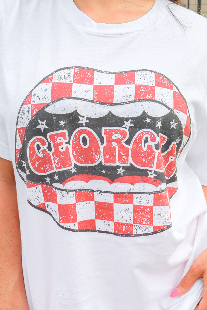 Get ready for gameday in Georgia with this graphic tee! Dress this tee up with a sequin skirt, cowgirl boots, and a clear bag! Or pair this tee with cropped jeans and sneakers for a casual gameday look!