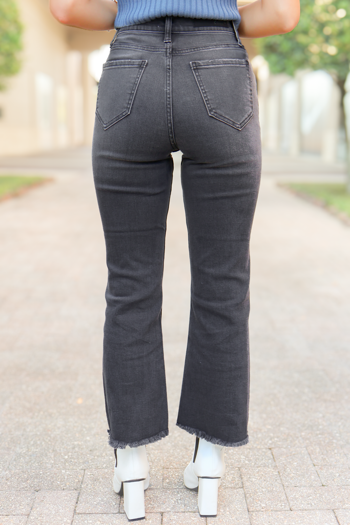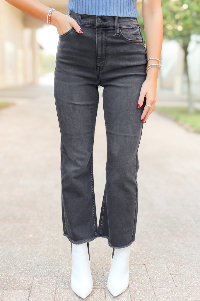 Our How's It Going Cropped Flare Raw Hem Jeans are the perfect piece no matter the season! These flare leg jeans have the ideal straight fit style while still allowing them to be comfortable and not restricting. The black denim color of these jeans allow them to be worn for every day activities as well as for more festive occasions! The low waist style of these flare leg jeans is so flattering for every body type.