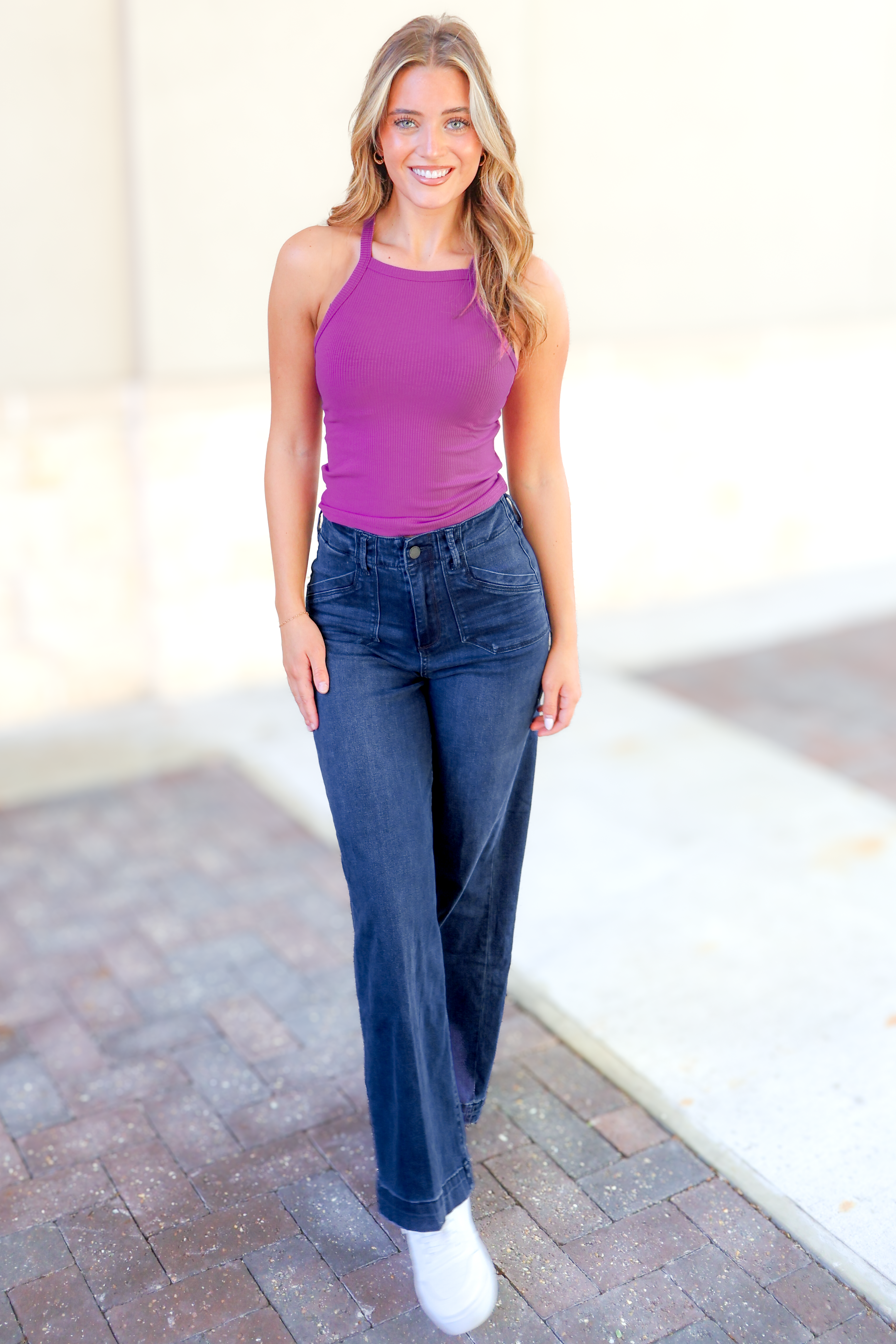 The fitted ribbed style of this tank adds a fashionable touch, making it perfect for a casual event or getting dressed up! Add this top with a pair of jeans, a pleather belt and a pair of stylish sneakers for a casual outfit! Or style this y back tank with a fun skirt and sparkly earrings for an easy tailgating look! Make a statement every single day with our In Essence Halter Neck Y-Back Ribbed Tank!