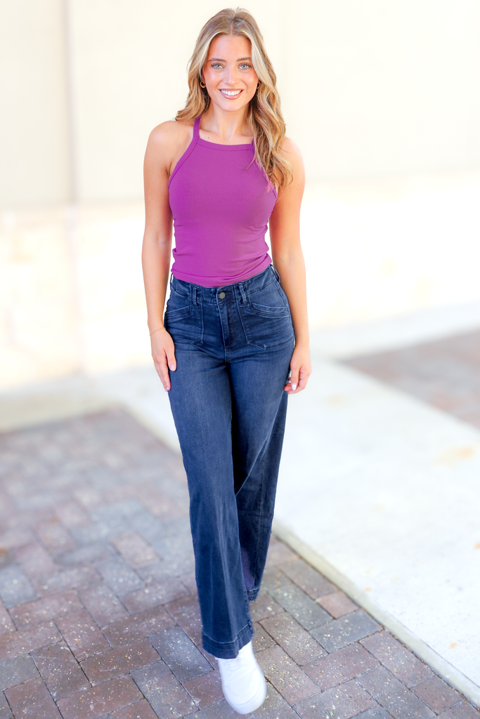 Elevate your game day wardrobe with our In Essence Halter Neck Y-Back Ribbed Tank! You will want to wear this piece every day! This tank is stylish while also providing comfort and support. Step-up your every day style with this must-have addition to your closet. The lightweight material will ensure you stay cool and comfortable during gameday or everyday wear!
