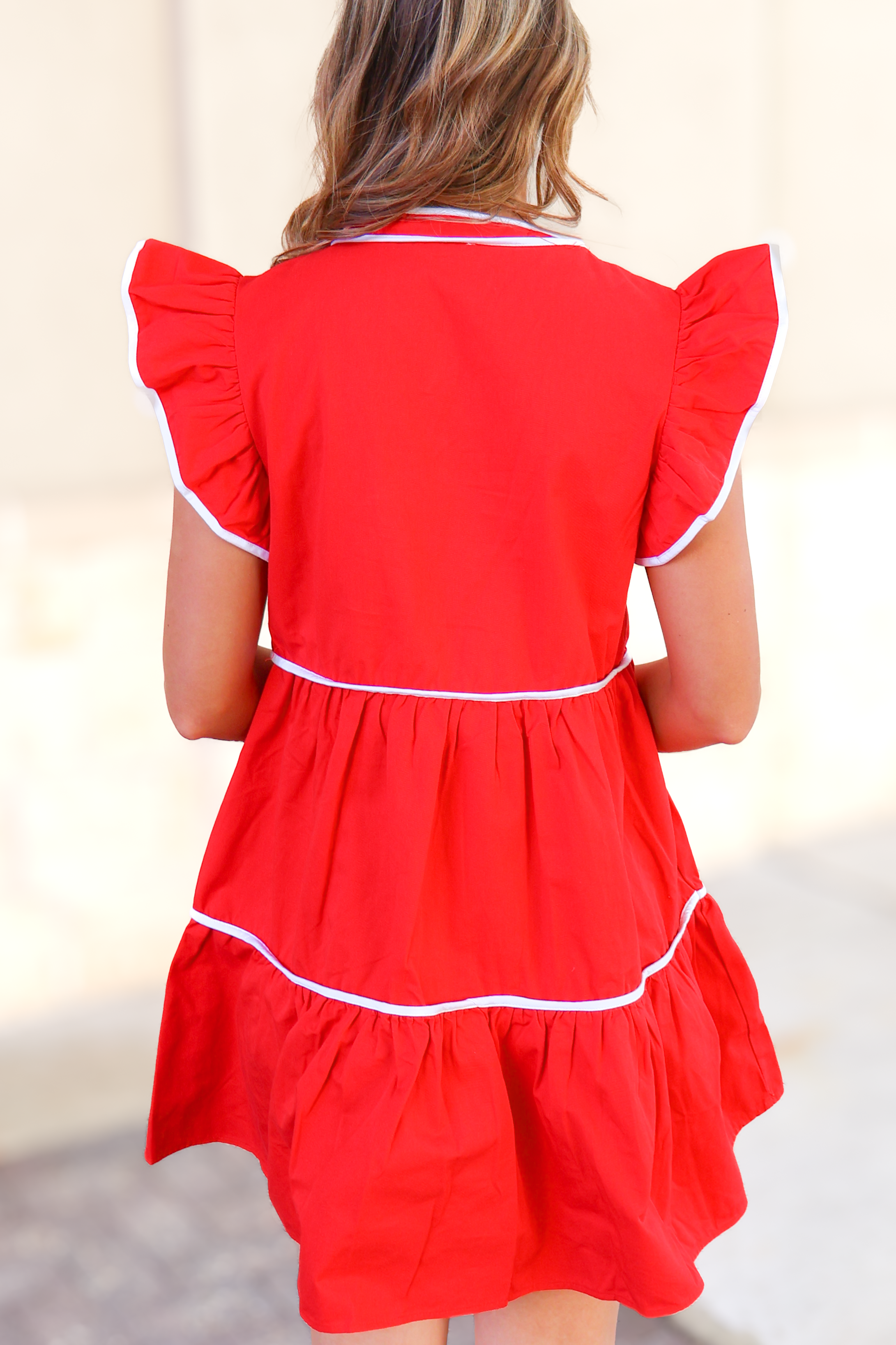 Get ready to be the best dressed at every event with our new In The Loop Contrast Ruffle Sleeve Dress in Red! This girly and fun dress is perfect for any occasion or event you have coming up this season! The ruffle sleeve and loose fit style of the mini dress adds a feminine flair. This ruffle sleeve mini dress will help keep you cool on warm days. The short sleeve style and contrast details make this a flattering option for any body type. The style is so girly and cute!