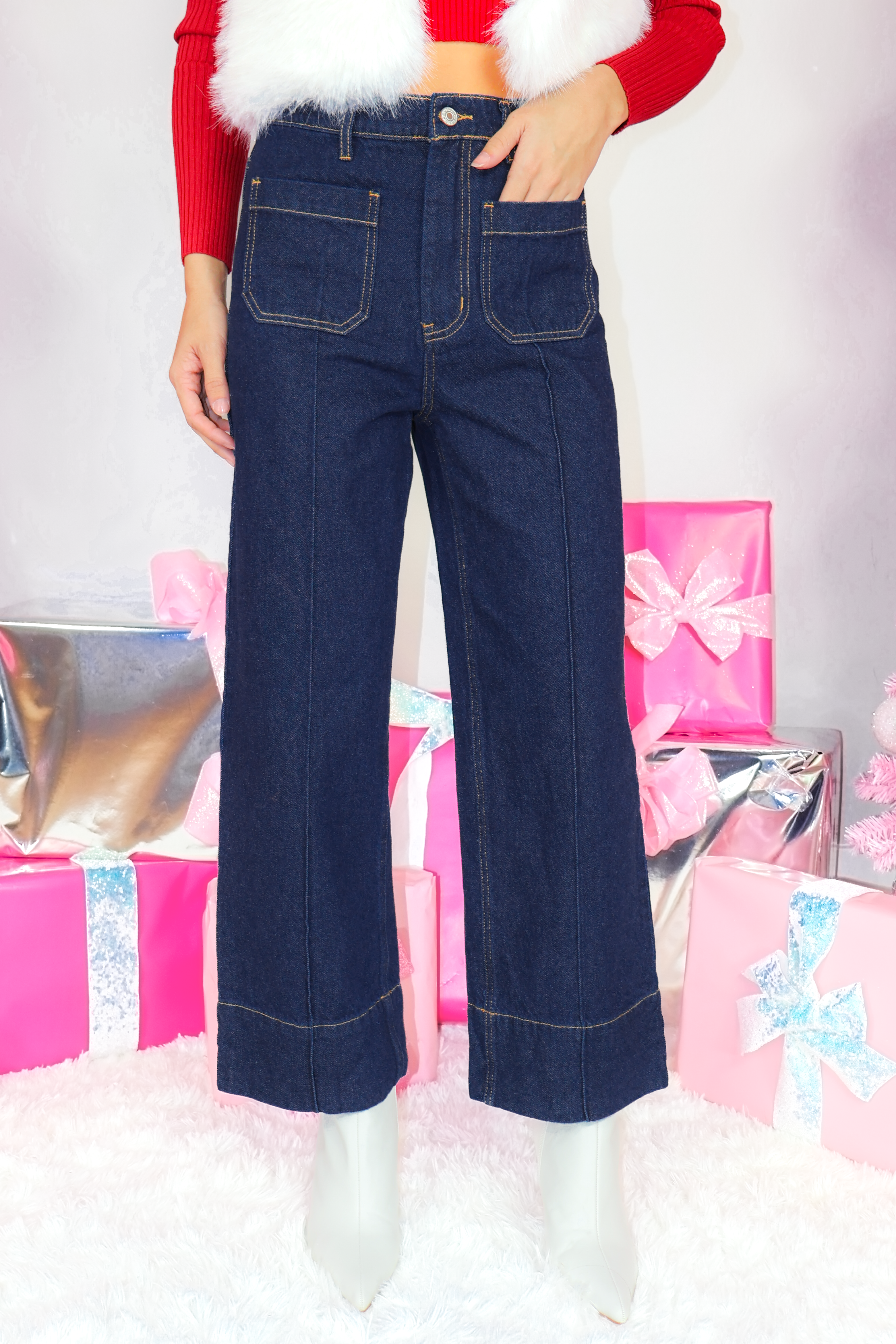 Our Classic Simplicity Front Pocket Jeans are the perfect piece no matter the season! These front pocket jeans have the ideal wide culotte fit while still giving shape to the legs. The camel and dark denim color of these jeans allow them to be worn for every day activities as well as for more festive occasions! The high waist style of the front pocket pants is so flattering for every body type.