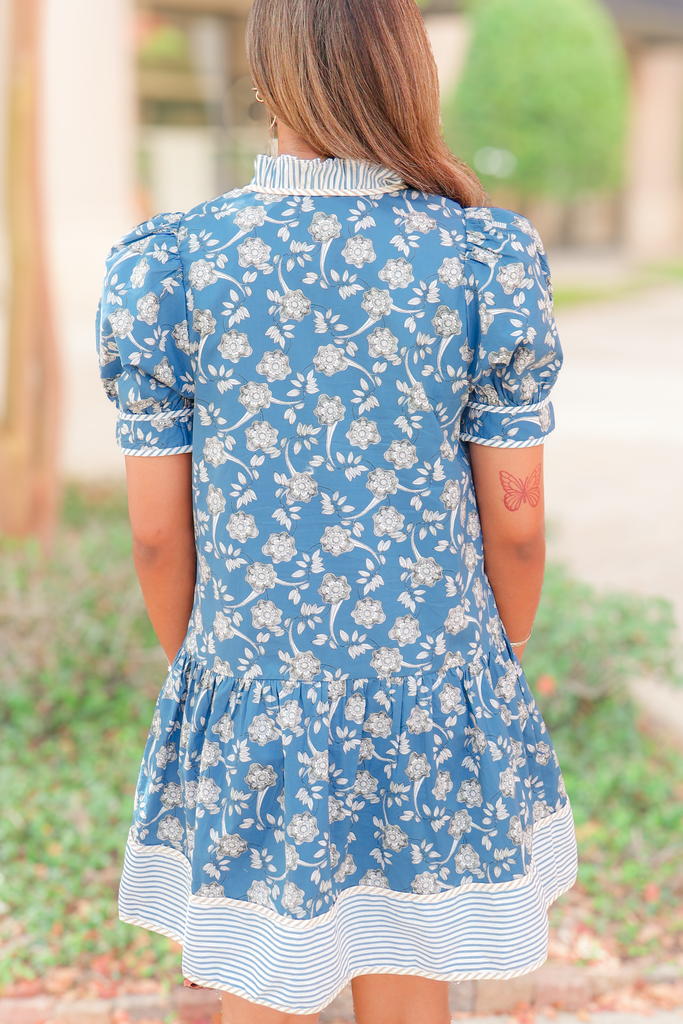 Wear our Old Fashioned Floral Stripe Detail Dress with nude heels and simple earrings to a wedding or other special event or style this floral dress with sandals and a headband for a dressy night out with friends! This mini dress is exactly what your fall wardrobe has been needing! You do not want to miss out on this gorgeous floral dress!