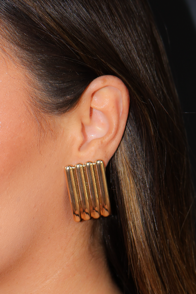 Style these stud earrings with a fun floral dress to add a little dainty girly dazzle to your vacay look! Or pair with any of our new top and shorts sets from our On Island Time collection for a fun beach day! Our Signature Look Ribbed Metal Earrings need to be a part of your upcoming outfits! You do not want to miss out on these adorable stud earrings!