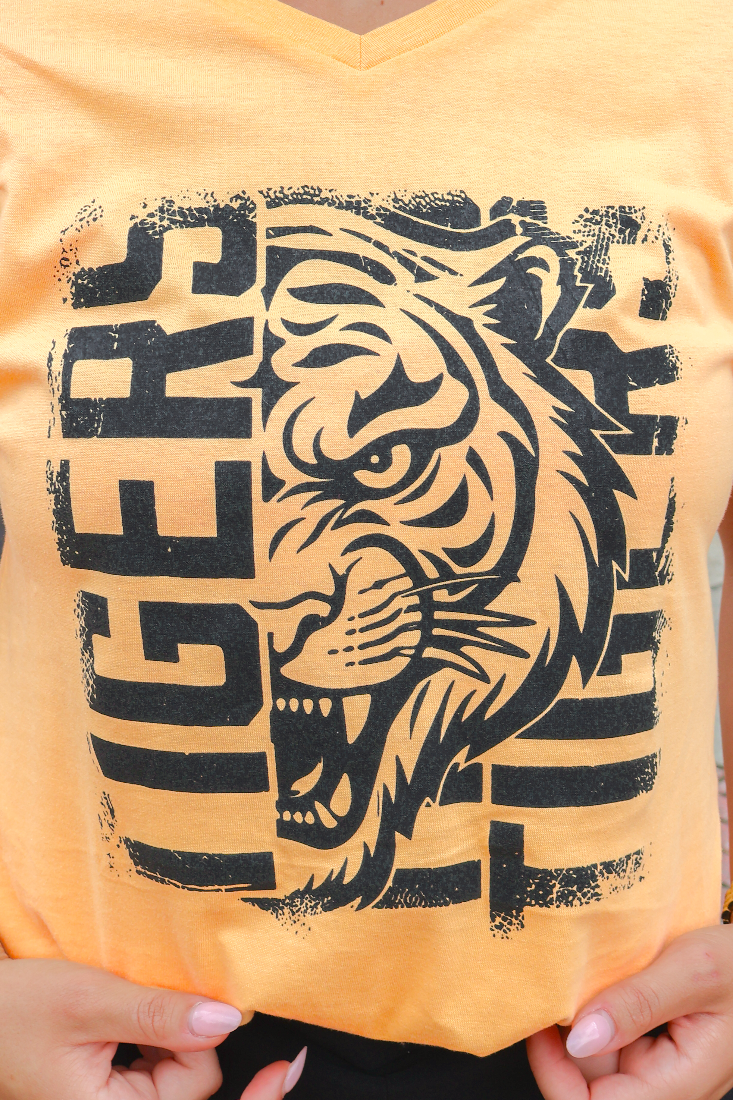 Our Tigers Distressed Printed V-Neck Tee is the perfect new addition to your wardrobe! This fabulous tiger tee can be paired with practically any outfit or event! The tiger mascot with the distressed style words adds a girly flair to the simple tee. Stay comfortable and cool during game days or shopping days thanks to the soft, breathable material and slightly stretchy fabric of this tiger tee. This is the perfect transitional piece for the upcoming season!
